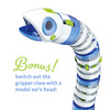 Master the art of robotic control as you operate the arm through its impressive range of motion using nothing but cable tension and your own hand movements. The right joystick governs upper body articulation while the left controls the lower sections, with dedicated buttons for claw rotation and grip control. Switch between the precision gripper and the playful eel head attachment to transform your robotic arm into different mechanical creatures.