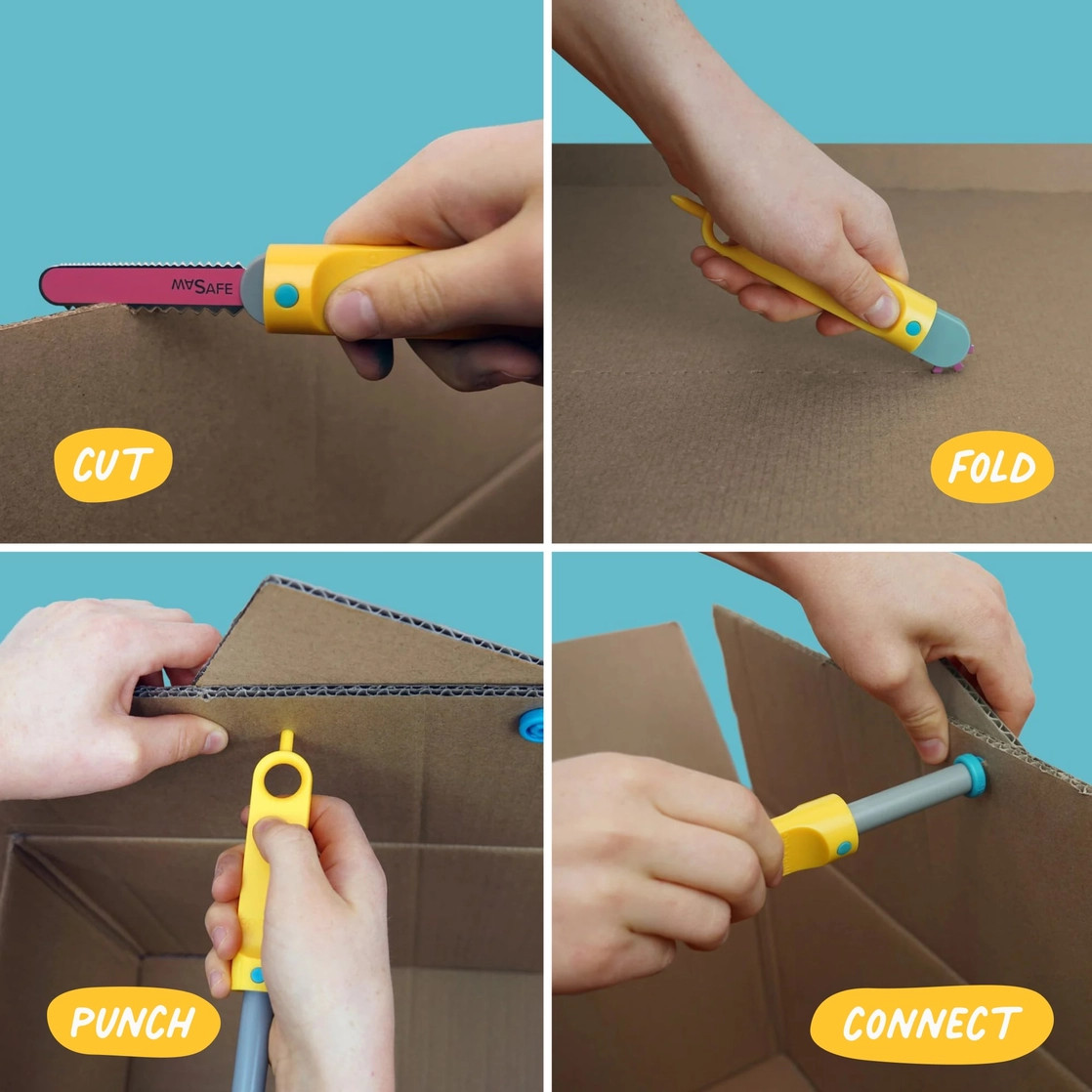 Each kit contains an abundance of classroom-friendly tools that enable students to safely cut, fold, and join upcycled cardboard materials. We've streamlined the cardboard construction process to make it both accessible and educational.