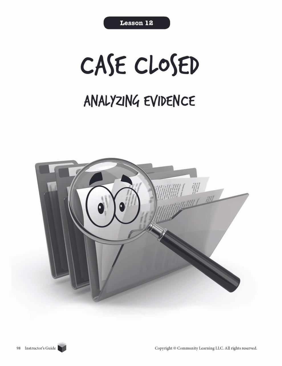 Lesson 12: Case Closed: Analyzing the Evidence: Students test their analytical skills when all of the evidence is laid on the table—and will lead our detectives to point their collective fingers at the guilty party: mystery solved!