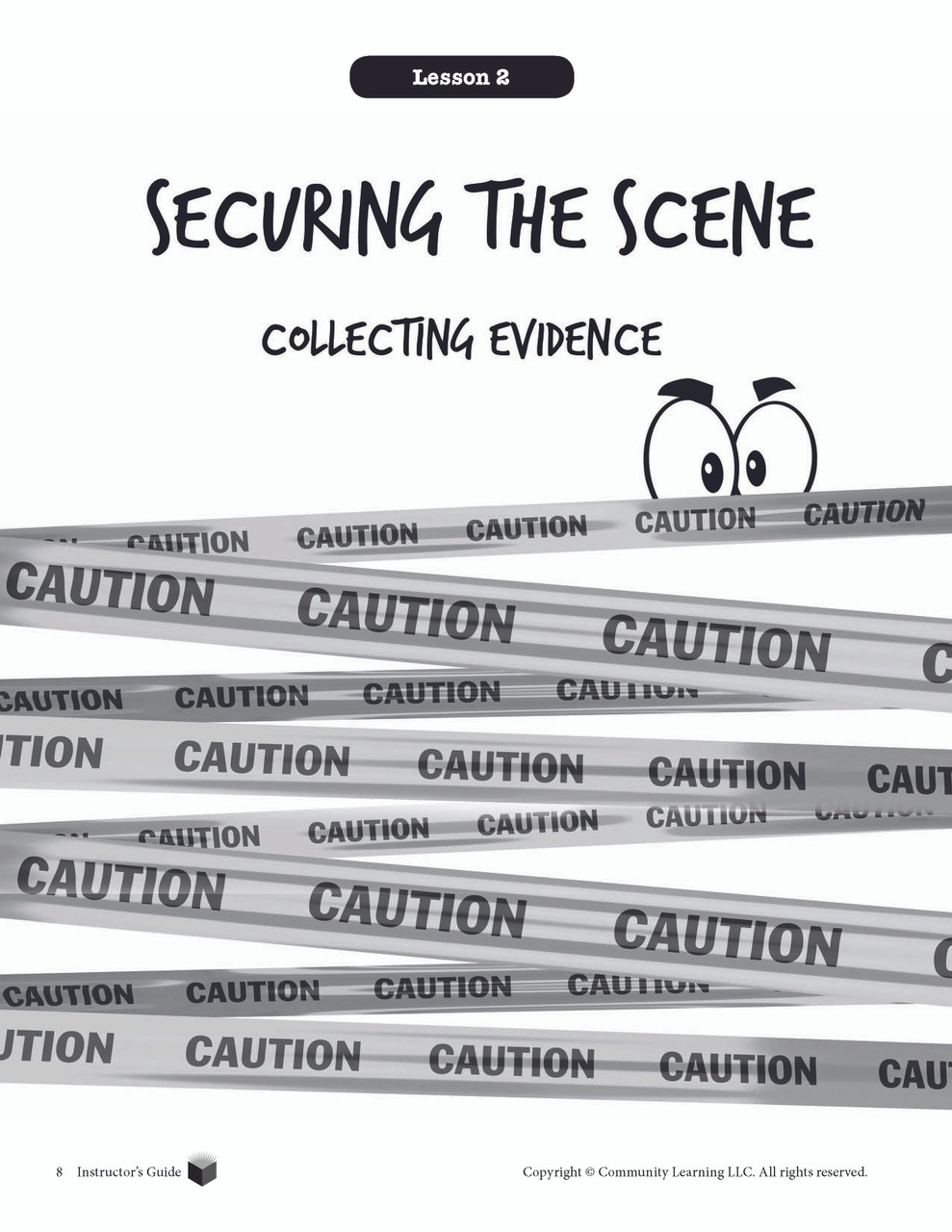 Notes for the Instructor: Brief instructor notes introduce the subject matter and challenges presented in the particular lesson. They often contain real-life, age-appropriate examples from crime in history or popular culture.