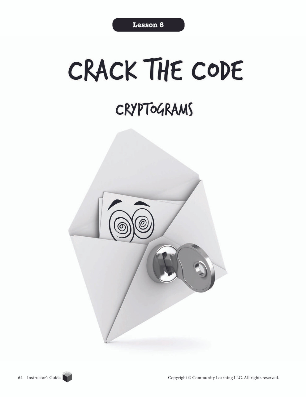 Lesson 8: Crack the Code - Cryptograms: It may not be quite as challenging as the DaVinci Code, but the coded message left on Mr. Mugg's desk just might point to a clever thief. Learners uncover many secrets of the alphabet (and of master criminals!) in this deciphering activity.