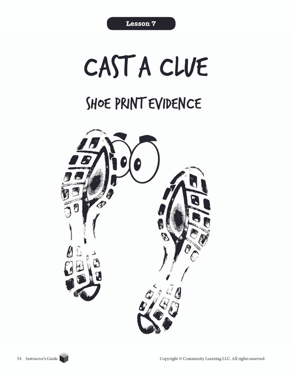 Lesson 7: Cast a Clue – Shoe Print Evidence: The guilty party had no idea what they had stepped in. Students analyze shoe prints left at the crime scene to determine if any of the suspects were there.