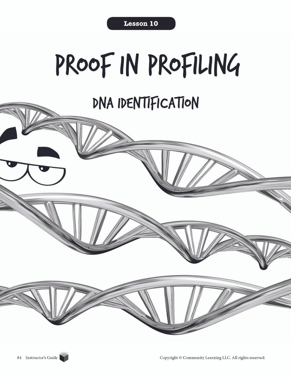 Lesson 10: Proof in Profiling - DNA Identification: The case is nearly cracked when students compare strands of suspects' DNA and begin to close in on the real culprit. This authentic investigatory procedure explores genetic markers.