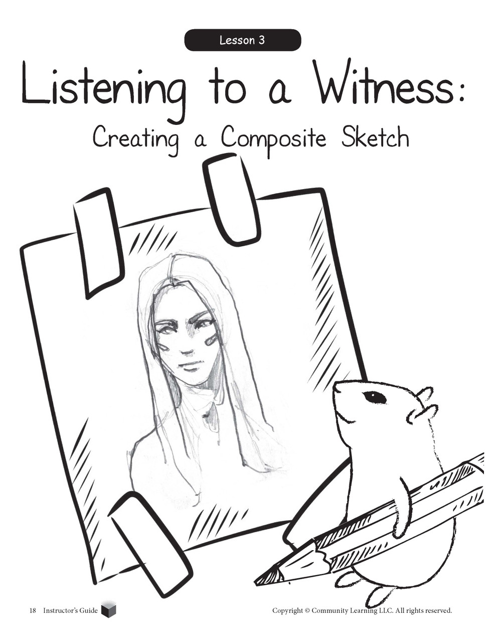 Lesson 3: Listening to a Witness: Creating a Composite Sketch: Students will discover that a picture can replace a long verbal description and help others better understand. In science, it is very common to use pictures - photographs, diagrams, and graphs – to convey your process and findings.
