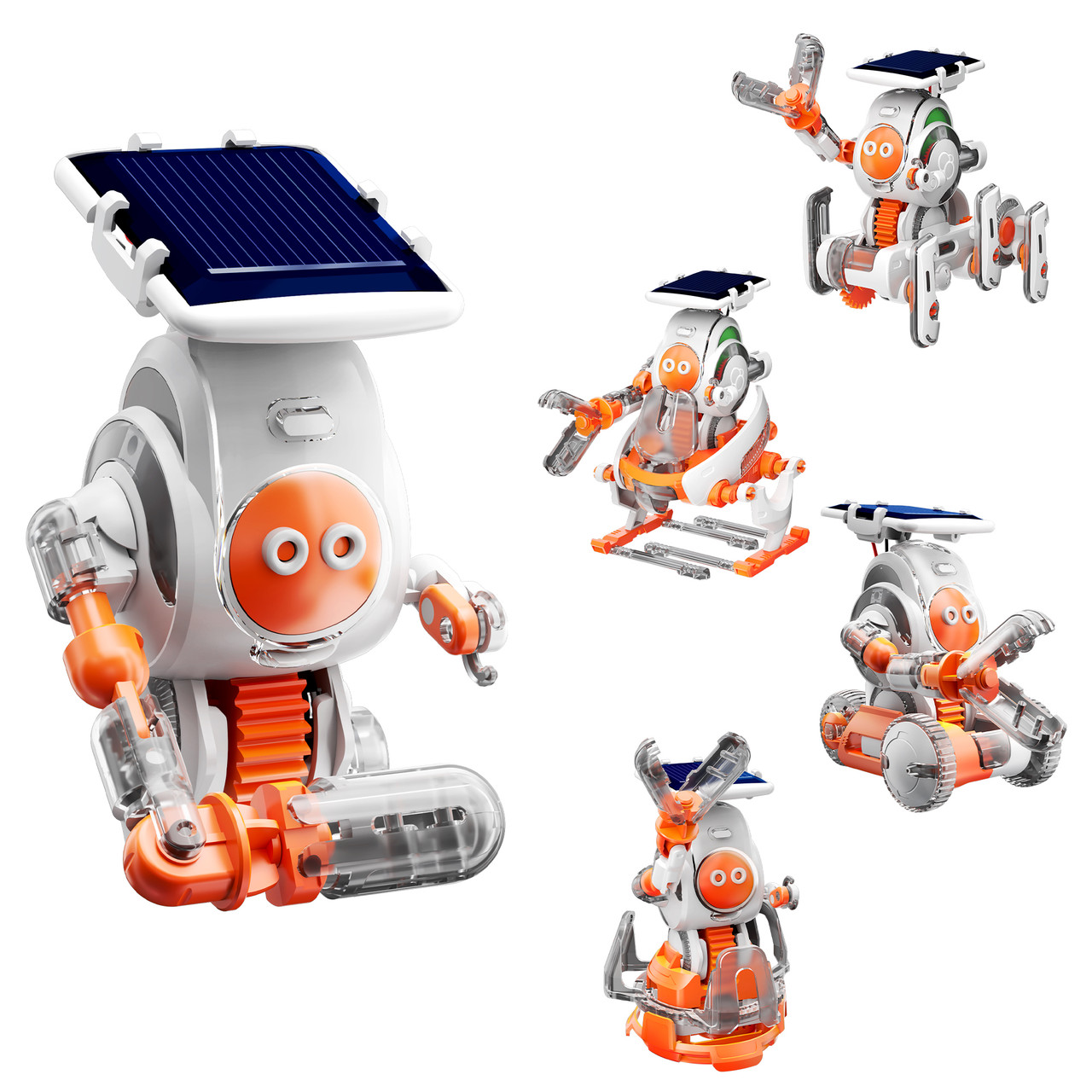 - Five Solar-Powered Robots: One main robot transforms into four different vehicles: walker, crawler, roller, and orbiter